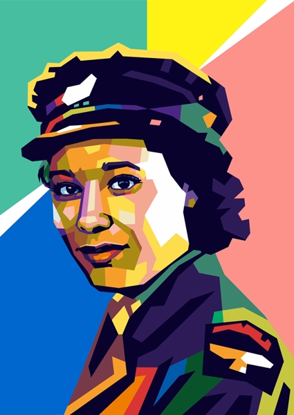 "Lillian Bader" poster av Mu'ifatin .. Fargerik popkunst møter historie i denne eksplosive hyllesten til Lilian Bader – den første svarte kvinnen i britiske væpnede styrker. Geometriske former og sterke nyanser skaper et blikkfang som både roper og hvisker styrke og motstand. Litt som en superhelt i uniform, men ekte vare. Perfekt for deg som vil ha kunst med både attitude og betydning – fordi empowerment aldri har sett så kul ut. Men, vent… er det ikke på tide å eie litt historie selv?