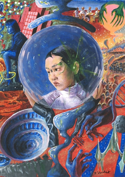 Art Print "Cyberpunk nysgjerrig kvinne" av Daniel Grünwald. Tilgjengelig i forskjellige størrelser som plakat eller innrammet fine art print. I kombinasjon med en ramme vil dette kunstverket virkelig skille seg ut i din personlige kunstgalleri!