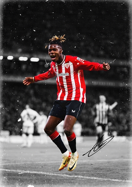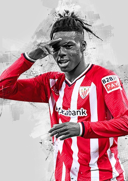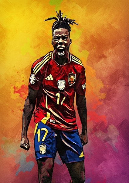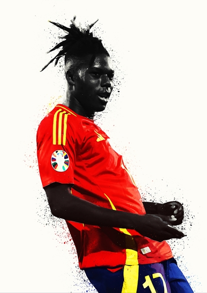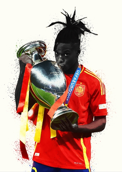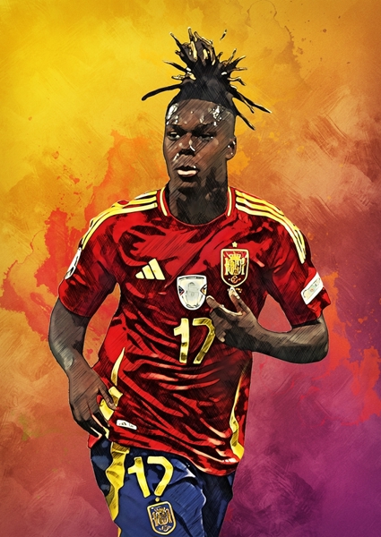 Art Print "Nico Williams - Spania" av Fußball Total. Tilgjengelig i forskjellige størrelser som plakat eller innrammet fine art print. I kombinasjon med en ramme vil dette kunstverket virkelig skille seg ut i din personlige kunstgalleri!