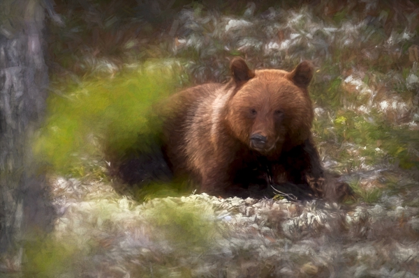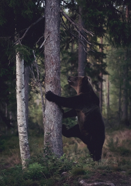 "A brown bear that came straight towards me after dawn after a night of waiting for a visit"