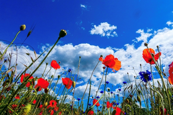 "Blomsteräng" poster av Ann Wahlström. En eksplosjon av røde valmuer og blå kornblomster skyter opp mot en nesten surrealistisk blå himmel – det er som om sommeren selv har tatt bolig her. Bildet fra Öland fanger et øyeblikk der naturen ikke bare eksisterer, men lever med en slags vill, leken energi. Skyene driver dovent forbi, og du kan nesten kjenne den varme vinden som rusker i blomsterengene. Perfekt for deg som vil ha et snev av sommerens ville sjarm rett inn i stua. Men, vent… det er mer enn bare blomster – det er en følelse.
