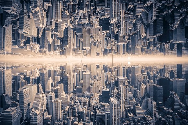 "View from Empire state building. City "reflected" in the sky and gives the impression of two cities located parallel"