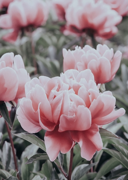 "Pink Peonies against it's own green leaves on a warm summer's eve."