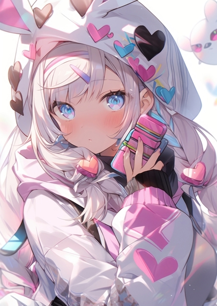 "Słodkie Anime Różowa Miłość" poster autorstwa Anime Sekai. Ta urocza anime dziewczyna w białej bluzie z kapturem pełnym kolorowych serc to prawdziwy zastrzyk pozytywnej energii. Jej duże, niebieskie oczy błyszczą ciekawością, a delikatny rumieniec dodaje jej naturalnej słodyczy. Pastelowa paleta barw i detale w postaci serduszek sprawiają, że obraz emanuje miękkością i lekkością, idealny dla fanów anime, którzy chcą wprowadzić odrobinę uroku do swojego wnętrza. Po prostu magia kawaii, która przyciąga wzrok!