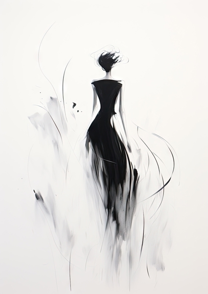"Minimalistyczna baletnica" poster autorstwa Decker Studios. Ta minimalistyczna baletnica to prawdziwa poezja ruchu w czerni i bieli. Smukła sylwetka zarysowana węglem zdaje się tańczyć w powietrzu, a rozmyte linie sukni nadają lekkości i dynamiki. Prosta, a jednocześnie pełna ekspresji forma przypomina, że mniej znaczy więcej – elegancja spotyka nowoczesność, a cały obraz pulsuje energią tańca, której nie da się zatrzymać. Idealne dzieło dla miłośników minimalizmu i sztuki, która mówi sama za siebie.