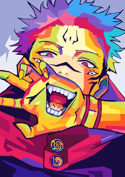"Sukuna Wpap Pop Art" poster autorstwa Anime Pop Art. Eksplozja kolorów i kształtów, która niemal krzyczy energią – to Ryomen Sukuna w wersji WPAP pop art. Charakterystyczne ostre linie i geometryczne plamy barw tworzą dynamiczny portret, który mówi „tu jest ktoś, kto nie boi się być sobą”. Ta wariacja na temat kultowego bohatera z Jujutsu Kaisen to żartobliwa, a zarazem odważna reinterpretacja, która z miejsca przyciąga wzrok i nie pozwala oderwać spojrzenia. Idealny wybór dla fanów anime i sztuki z pazurem.