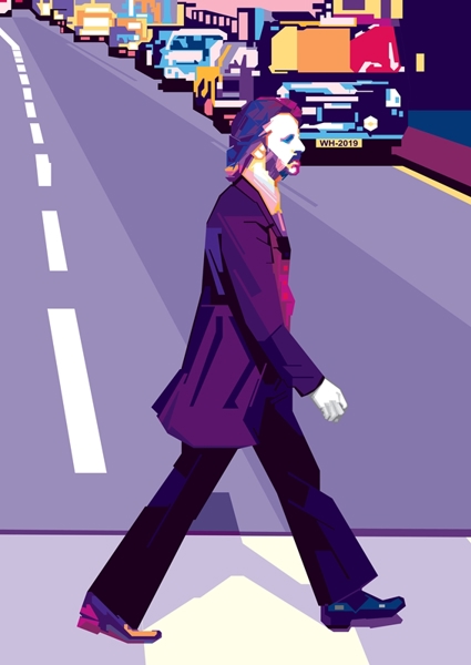 "Ringo Starr" poster autorstwa Joe Hann. Ta ilustracja w stylu pop art to totalny hołd dla legendy muzyki, która przechadza się przez miejską dżunglę pełną kolorów i rytmu. Geometryczne kształty i żywe barwy nadają całości dynamiczny puls – jakby scena z Abbey Road dostała nowoczesny upgrade. Ta praca to nie tylko obraz, to wibracja historii, która wciąż gra głośno i wyraźnie. Idealna dla każdego, kto ceni muzyczną nostalgię i artystyczny zadzior.