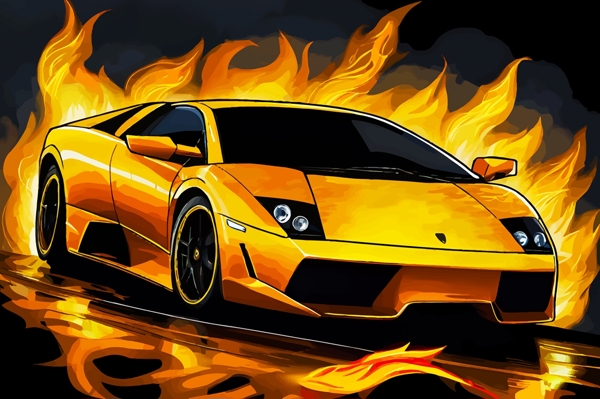 "The Lamborghini Murciélago roars to life in a blazing fire atmosphere, its sleek lines and aggressive stance captivating all around. As flames dance in the background, the iconic V12 engine emits a thrilling growl, igniting a passion for speed and performance. "