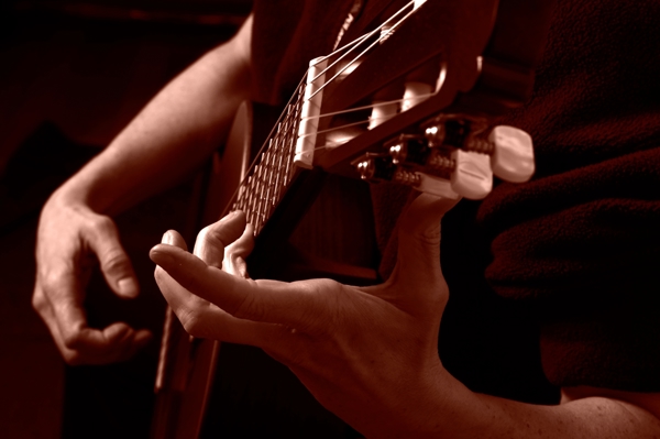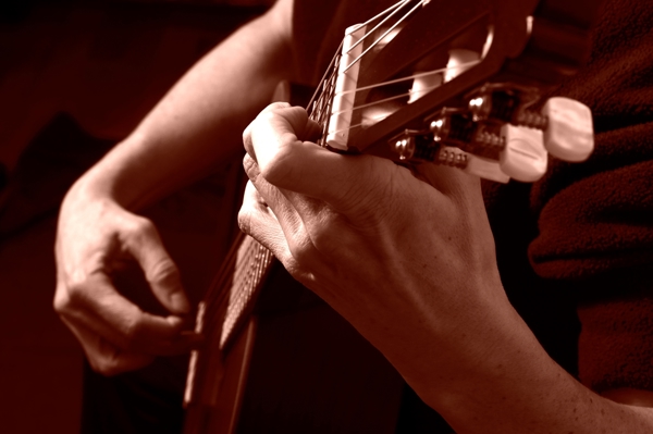 "I have a brother who plays guitar, took this picture while he was sitting on his couch playing some."