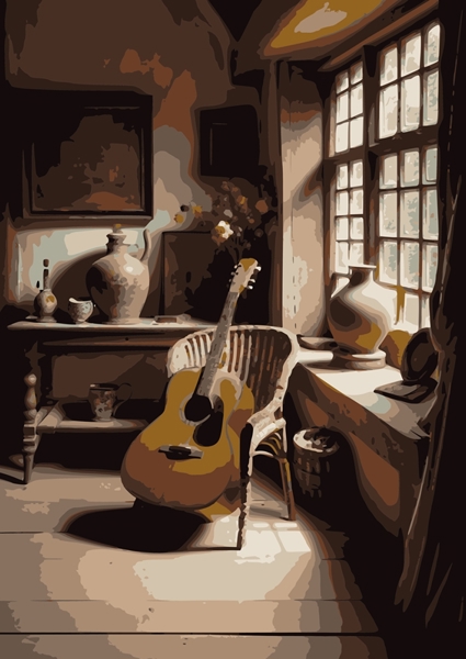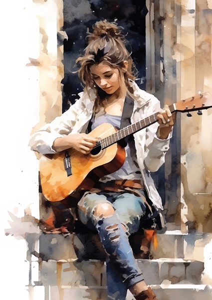 Druk artystyczny "Gra na gitarze" autorstwa Joni Timonen. Dostępny w różnych rozmiarach jako plakat lub zaopatrzony druk artystyczny. W połączeniu z ramą ta praca naprawdę wyróżnia się w Twojej osobistej galerii sztuki!