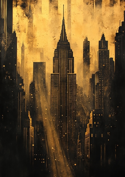 Art Print "Horizonte Art Déco Gold Nova York" de Arthur Gold. Disponível em diferentes tamanhos como poster ou Fine Art Emoldurado. Combinado com uma moldura, esta obra de arte destaca-se realmente na tua galeria pessoal!