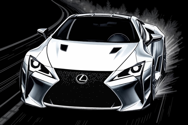 "The Lexus LFA, gleaming in metallic silver, roars around the circuit with breathtaking speed. Its sleek silhouette cuts through the smoky atmosphere, leaving a trail of adrenaline and excitement in its wake. Engine growls resonate, merging with the haze, creating an electrifying symphony of power."