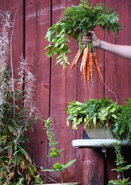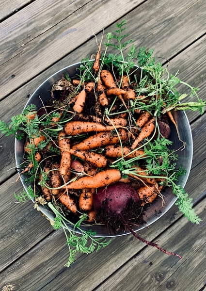 "An abundance of fresh veggies harvested direct from our garden on a crisp fall morning - including green kale, parsnips, rainbow chard, dino kale, sunchokes and carrots. "