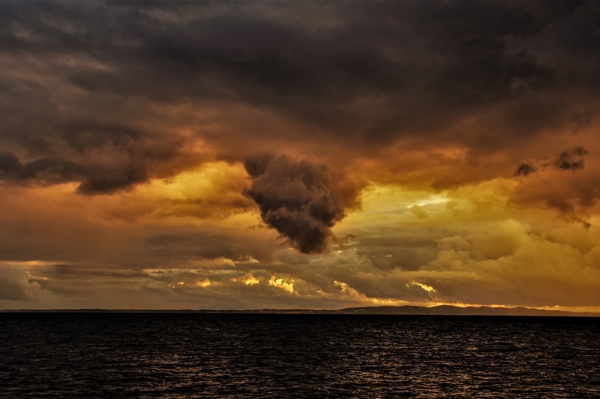 "Storm som kommer in från havet, med kullaberg i horisonten"