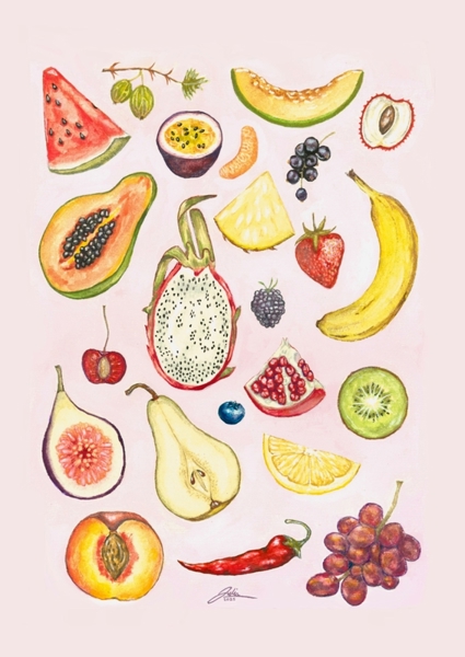 Art Print "Frukt med" av "THVT". Finns i flera storlekar som poster eller inramat Fine Art Print. Kombinera med en ram och bygg vidare på din personliga konstsamling!