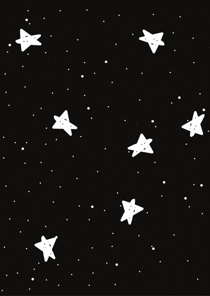 "Rymd" poster av Anna Jiménez. Svart bakgrund där lekfulla, vita stjärnor sprider sig som små ljuspunkter över ytan – minimalism när den är som mest kosmisk. Det är liksom rymden utan krusiduller, en grafisk blinkning till universums oändlighet. Perfekt för dig som vill ha en touch av galaxen hemma, utan att det blir för mycket. Enkelheten gör det oväntat coolt, nästan som en visuell high five från yttre rymden. Space, fast snyggt och chill.