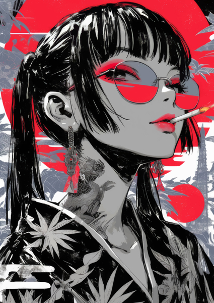 Art Print "japansk våg flicka #2628496" av "Julia Leister". Finns i flera storlekar som poster eller inramat Fine Art Print. Kombinera med en ram och bygg vidare på din personliga konstsamling!