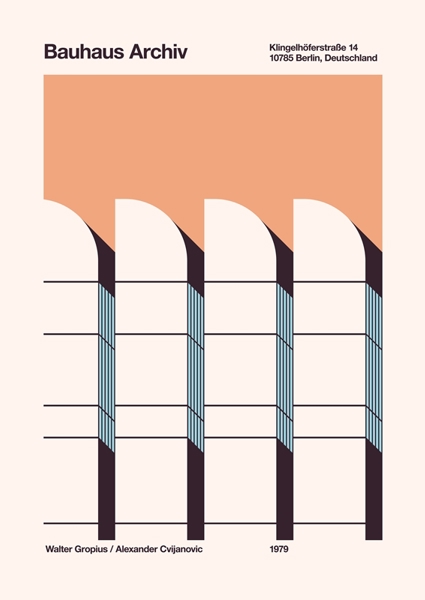 "Denna poster är inspirerad av Bauhaus-rörelsens minimalistiska och funktionalistiska designfilosofi. Med sina geometriska former och harmoniska färgkombinationer skapar den en tidlös estetik som passar både modern och retroinspirerad inredning. "
