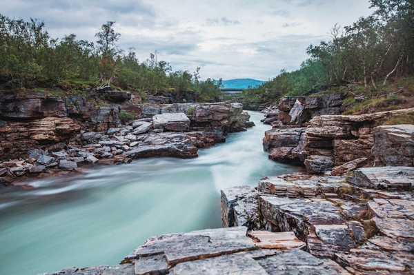 "Abisko Canyon" poster av Helena Gunnare. Vattnet i Abisko Canyon strömmar som en svalkande fläkt genom det karga, steniga landskapet – naturens egen tidsmaskin i Lapplands hjärta. Grönskan som kikar fram bland klipporna ger det där oväntat lugna men ändå vilda vibben. Det är som att ha en bit av Sveriges råa, orörda natur hemma på väggen – perfekt för den som vill ha en dos äventyr men utan att lämna soffan. Lite som en naturupplevelse på repeat.
