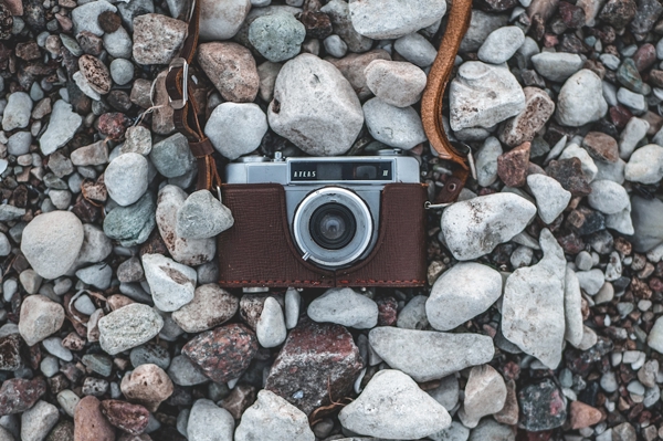 "Retrokamera" poster av Lucas Lindfors. En vintage Yamato: Atlas 35 ligger bland Ölands karga stenkust – analog charm möter naturens råa estetik. Den släta metallkameran kontrasterar skarpt mot de ojämna, färggranna stenarna och skapar en oväntad visuell dynamik. Det är som att hålla fast vid en tid innan allt blev digitalt, en hyllning till filmens magi och nostalgi. Perfekt för dig som vill ha en touch av retro med en rå, autentisk känsla från Sveriges vackra ölandskust.