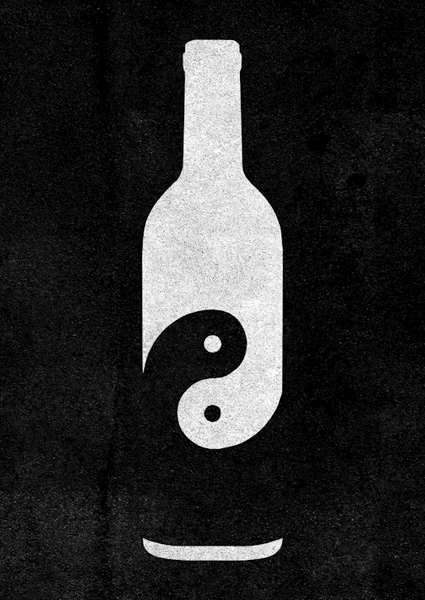 "En grafisk och stilren design i svart och vitt med symbolen för Yin och Yang."
