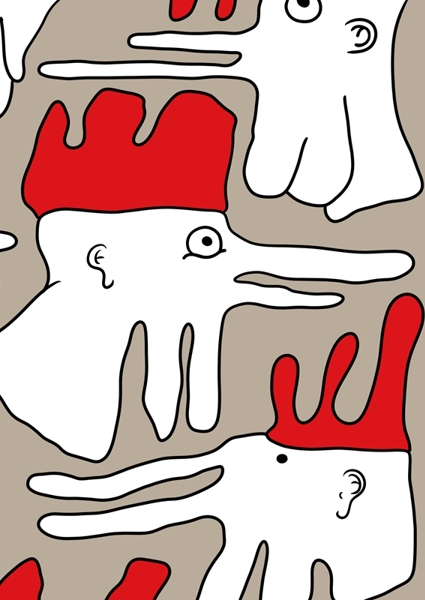 "Part 3" poster by Sjoerd Wiegmans . This artwork bursts with playful energy – a quirky parade of characters sporting vibrant red crowns. Each figure, with its exaggerated features and whimsical expressions, invites a second glance. The minimalist lines and bold colors create a striking contrast against the neutral background, making it feel both contemporary and nostalgic. It’s like a cartoon dreamscape where imagination runs wild. Perfect for adding a splash of fun to any space, this piece is a conversation starter waiting to happen.