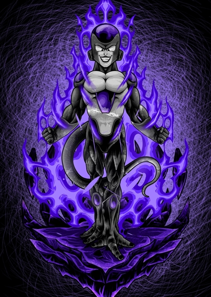 "BLACK FRIEZA NEW TRANFORM" poster by arif setiawan. Dive into the electrifying world of anime with this striking metal wall art featuring Black Frieza. Crafted with precision, this piece captures the fierce essence of the iconic character, radiating power and intensity. The vibrant purple flames and sleek black design create a dynamic visual that commands attention. Perfect for any Dragon Ball fan, this artwork transforms any space into a realm of action and fantasy. Hang it up and let the energy flow!