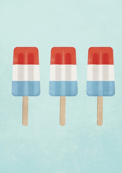 "Summer fresh ice popsicle" poster by Puspita Wulandari. A trio of vibrant popsicles stands out against a soft, pastel backdrop – think summer vibes in a minimalist package. These sweet treats, layered in bold red, white, and blue, evoke nostalgia for lazy days and holiday fun. Perfect for adding a splash of color to any space, this artwork captures the essence of summer indulgence. It's a playful nod to those carefree moments, making it an ideal piece for anyone craving a taste of seasonal joy.