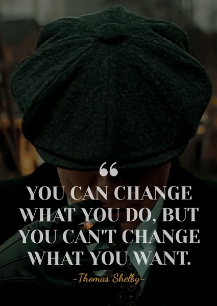 "Thomas Shelby " poster by Premium Art. This artwork captures the gritty essence of Thomas Shelby, featuring a striking quote that resonates with ambition and desire. The bold typography contrasts against a moody backdrop, embodying the spirit of "Peaky Blinders." It's a reminder that while actions can shift, true desires remain steadfast. Perfect for fans of the series or anyone who appreciates a touch of rebellious wisdom. Elevate your space with this piece that speaks volumes about ambition and authenticity.
