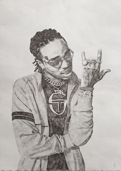 "Billie Eilish (1)" poster by MAY. This striking pencil drawing captures the essence of Billie Eilish in a moment of raw emotion. With her signature oversized tee and microphone in hand, she embodies the spirit of Gen Z – a blend of vulnerability and strength. The monochrome palette highlights her expressive features, making the artwork feel both timeless and contemporary. It’s a celebration of girl power, reflecting the complexities of teenage life. Perfect for anyone who resonates with the unique color of teen pop.