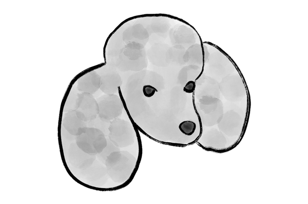 "Poodle" poster by Sarah Larsson. This artwork captures the essence of a silver gray poodle – fluffy, playful, and undeniably charming. The soft, watercolor-like texture gives it a whimsical vibe, perfect for kids or anyone young at heart. With its big, expressive eyes and floppy ears, this illustration radiates a circus-like joy that’s hard to resist. It’s not just a dog; it’s a smart little performer ready to steal the show. Ideal for brightening up any space!