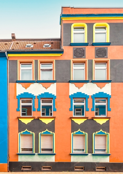 "Otto Richter 1" poster by Michael Schulz-Dostal. Dive into the vibrant world of Magdeburg with this striking architectural piece. Bold colors clash and harmonize, creating a playful facade that feels alive. Geometric shapes dance across the surface, echoing the Bauhaus spirit while giving a nod to modern minimalism. It’s like a visual conversation between past and present, where every window tells a story. Perfect for those who appreciate design that’s not just seen but felt. A true gem for any contemporary art lover!