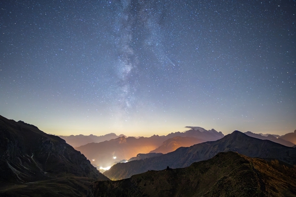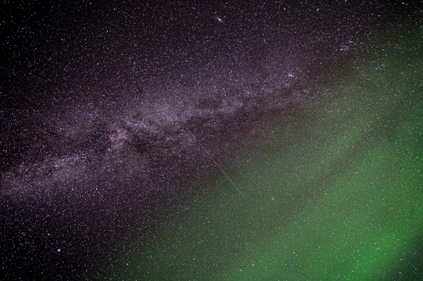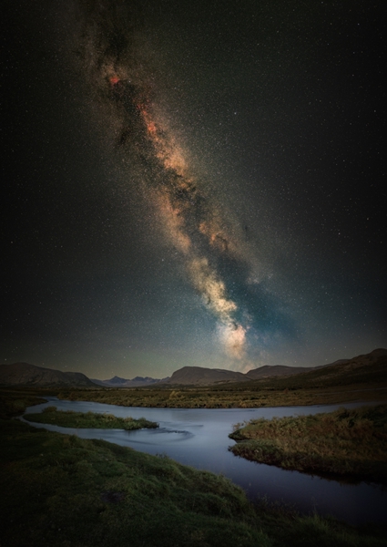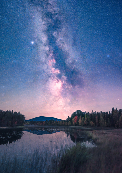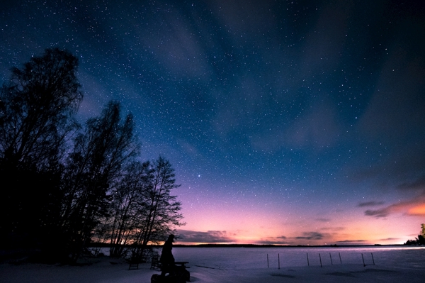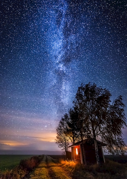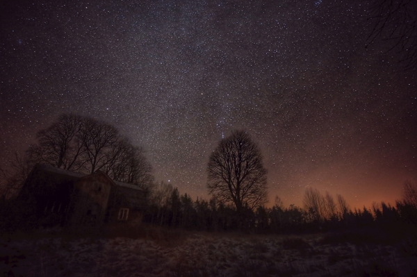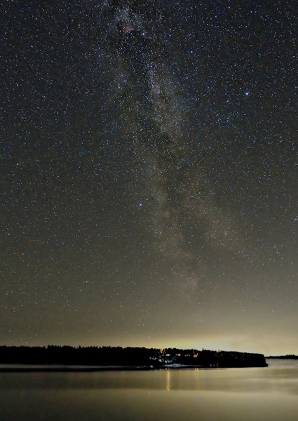"The Milky Way framing a tree with the city lights in the background. In the middle of winter, the Milky Way gets a wonderful glow and clarity."