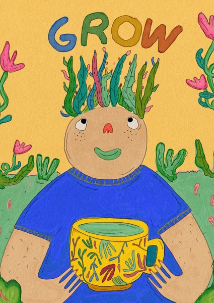 "Grow" poster by Sarah Larsson. A vibrant splash of green sets the stage for this playful word art. The word “grow” emerges in a soft, spray-painted style, inviting a sense of renewal and vitality. It’s like a breath of fresh air, echoing the essence of spring and summer. This piece captures the spirit of evolution—perfect for anyone looking to infuse their space with a reminder to thrive and embrace life. A bold statement that’s both casual and inspiring.