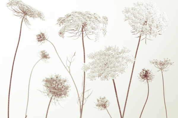 "Cow parsley 2" poster by Assaf Frank. Delve into the delicate world of cow parsley with this stunning photographic piece. Set against a soft white background, the ethereal flowers stand tall, their intricate structures almost whispering secrets of nature. The subtle washout effect adds a dreamy quality, inviting a sense of calm and tranquility. Perfect for modern spaces, this artwork effortlessly blends elegance with a touch of whimsy. A must-have for those who appreciate the beauty of simplicity and the art of nature.