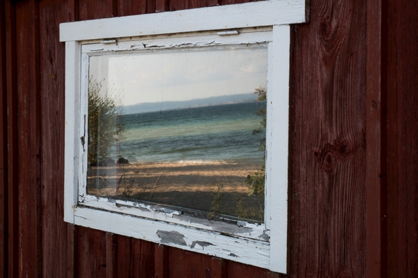 "The painting on the wall" poster by Patrik Nilsson. A window frame, weathered and charming, reflects the serene beach of Baskarp – a moment captured in time. The gentle waves of Vättern dance in the glass, blurring the lines between inside and out. It’s like a secret peek into nature’s canvas, where the rustic charm of the house meets the tranquil beauty of the shoreline. This artwork invites you to pause, breathe, and soak in the calm vibes of a perfect day by the water.