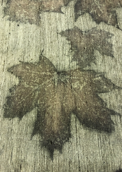"Maple leaves 2" poster by Galina Manikova. A stunning display of nature's artistry – this piece captures the delicate imprint of maple leaves, revealing their intricate patterns in a soft, earthy palette. The botanical printing technique brings a unique texture to the surface, as if the leaves have whispered their secrets onto the material. It’s like a moment frozen in time, where nature and creativity collide. Perfect for those who appreciate the beauty of the outdoors, this artwork invites a closer look and a deeper connection to the natural world.