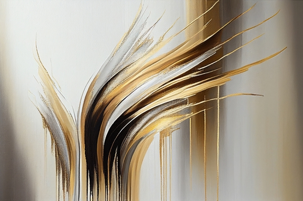 "Denna fantastiska målning kombinerar den rika guldtonerna med de lugna, neutrala tonerna av kräm och beige. Guldet ger en lyxig, elegant touch till duken, medan de neutrala färgerna ger en lugnande, harmoni. Oavsett om det betraktas på avstånd eller nära upp är detta målning säker på att fånga och inspirera. Det är den perfekta tillägget till vilket hem eller kontor som helst och skulle vara en omtänksam present till en älskad eller en annan konstintresserad."