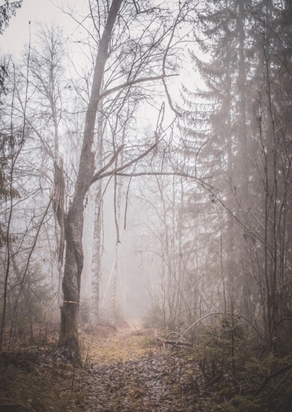 "Misty forest" poster by Johanna Hurtig. Step into a world where the ordinary transforms into the extraordinary. This misty forest scene captures a winding path through ancient trees, shrouded in a veil of fog. The atmosphere is thick with mystery, inviting exploration and contemplation. Nature's moody palette of muted greens and browns creates a serene yet haunting vibe. Perfect for those who appreciate the beauty of the Nordic wilderness, this artwork speaks to the heart of Dalarna's enchanting landscapes. Embrace the allure of the unknown.