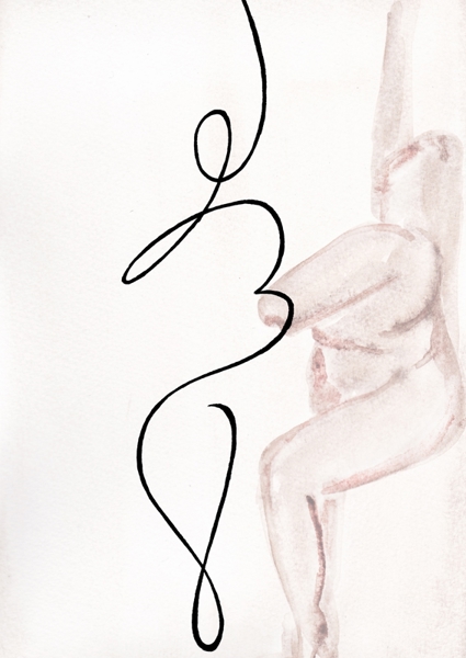 "Who I was born to be" poster by Charline Udby. A stunning watercolor piece that captures the essence of self-love and body positivity. The organic, one-line illustration dances over the soft hues of brown and beige, celebrating the beauty of the female form. It’s minimalist yet powerful, inviting viewers to embrace their own bodies with warmth and acceptance. This artwork speaks volumes about finding one's place in the world—perfect for anyone looking to add a touch of modern elegance to their space.