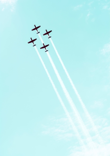 "Aerobatics show performed by the Israeli Air Force Aerobatic Team."