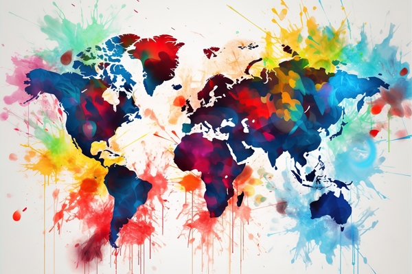 "World Map Colorful" poster by FotoKonzepteDE. A vibrant world map bursting with color – it’s like a splash party for continents! Each region pops with playful hues, inviting explorers to dive into the adventure of discovery. The artistic drips and splatters create a dynamic feel, making geography look like a canvas of creativity. Perfect for those who see the world as a colorful tapestry waiting to be explored. This artwork is a must-have for wanderlust souls and dreamers alike!
