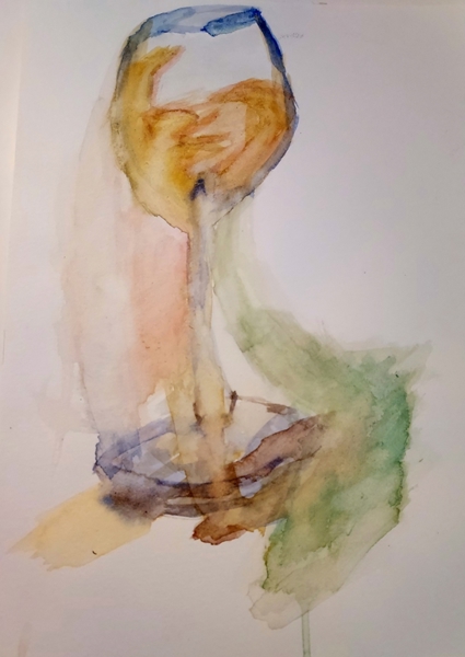 "Let the love flow like wine. The poster "Glass of wine" is a painting made on canvas with aquarelle colours."