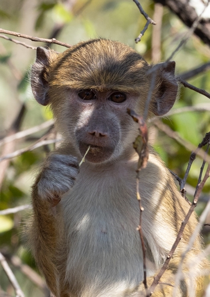 "A small baby baboon who stopped eating to watch us thoughtfully from a distance"