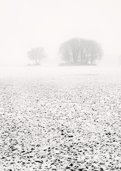 "Snow Fall" poster by Christer Sjöberg. A serene winter landscape unfolds, where soft snow blankets the ground in a muted palette of whites and grays. Trees emerge like ghostly figures in the distance, shrouded in mist, creating an ethereal vibe. The stillness is palpable—just when it started snowing, everything feels hushed and magical. This artwork captures that fleeting moment, inviting viewers to step into a tranquil, snowy escape. Perfect for those who crave a touch of winter wonder in their space.
