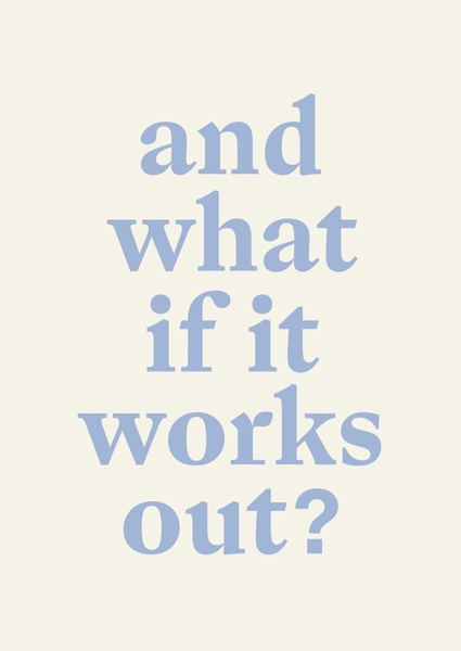 "motivational poster that I cre" poster by Sylvie Mey. This typography poster is a breath of fresh air – light blue font pops against a creamy backdrop, delivering a simple yet powerful message. “And what if it works out?” It’s like a gentle nudge for those anxious moments, a reminder that positivity can sneak in when least expected. Perfect for any space needing a sprinkle of motivation, this piece is all about embracing possibilities. A stylish, colorful addition that whispers encouragement every day.