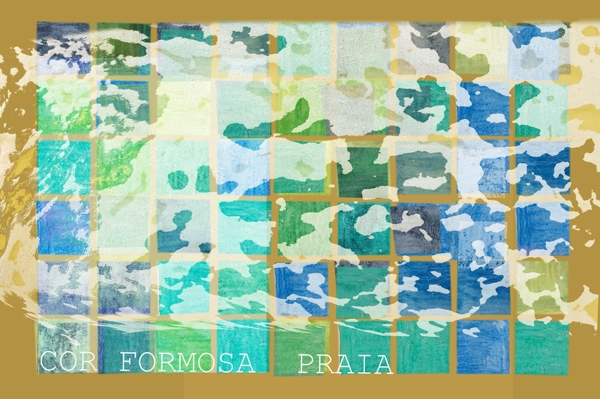 "COR FORMOSA PRAIA" poster by Monika Jacobi. Dive into the vibrant mosaic of colors that captures the essence of Ria Formosa – a playful dance of blues and greens, reminiscent of sunlit waves lapping against sandy shores. Each square tells a story, blending watercolor and pencil techniques into a digital symphony. It’s like a beach day bottled up, radiating pure joy and nature’s beauty. Perfect for those who crave a slice of coastal bliss in their space.