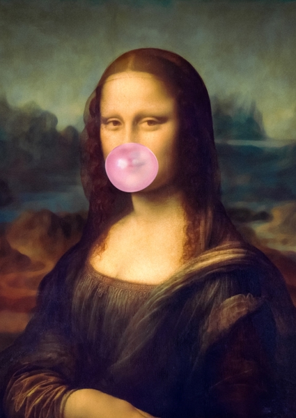 "Mona Lisa Bubble Gum" poster by Taudalpoi. This artwork takes the iconic Mona Lisa and gives her a cheeky twist with a bubble gum pop! Imagine the classic elegance of Da Vinci’s masterpiece, now playfully interrupted by a bright pink bubble. It’s a delightful blend of high art and humor, perfect for those who appreciate a bit of whimsy in their decor. Ideal for any space that needs a spark of creativity, this piece is sure to be a conversation starter. Transform your walls with this fun, surreal take on a timeless portrait!