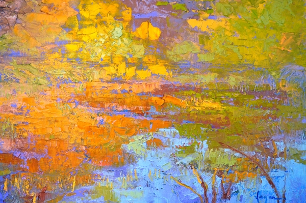 "This vibrant abstract landscape captures the essence of a serene autumn morning. With rich textures and warm hues, it brings a sense of calm and nature into any modern or rustic interior. Perfect for living rooms or office spaces seeking an inviting and tranquil ambiance."