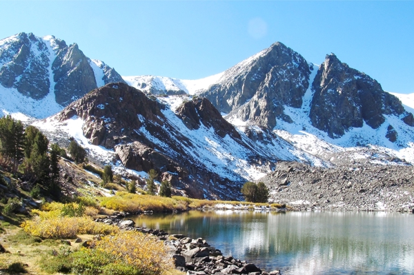 "Snowy Mountain Lake" poster by Gemma Bardot. A breathtaking alpine scene unfolds with majestic snow-capped peaks towering against a crystal-clear blue sky. The tranquil lake mirrors the rugged mountains, creating a serene reflection that invites calm vibes. Lush greenery and rocky textures add depth, capturing the wild essence of untouched nature. This artwork effortlessly enhances modern and rustic spaces alike, bringing a slice of wilderness indoors. Perfect for living rooms or offices, it transforms any area into a peaceful retreat.